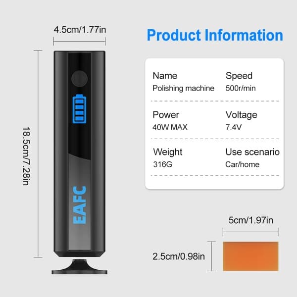 Equipped with a 4500mAh rechargeable battery, this gadget supports extended runtime on a single charge. Perfect for full car detailing sessions or quick touch-ups, the device charges via modern Type-C USB for convenience. Clear LED indicators (red for charging, green for fully charged) take the guesswork out of battery management, keeping you prepared wherever you polish.